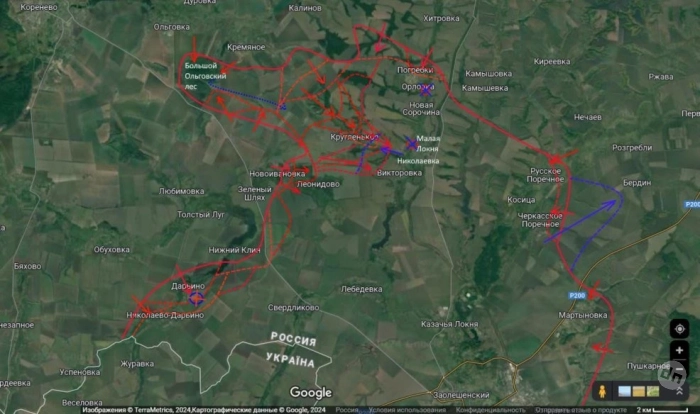 Подоляка отмечает в своей ежедневной сводке, что сейчас основная волна атак направлена на северный участок трассы Суджа - Курск. Основные силы ВСУ сосредоточены в районе Черкасского Поречного, куда активно перекидывается пехота на броне из Суджи.