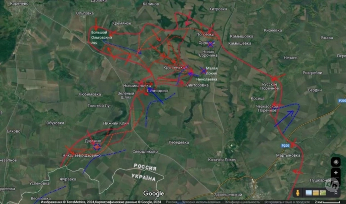Идет выдвижение частей противника в район Дарьино и в сопредельной части Сумской области. А еще противник атакует в районе Леонидово на Новоивановку.