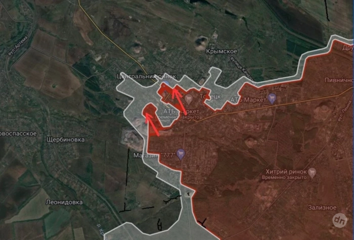 Торецкое направление. Торецке ВС РФ заняли всю южную часть горола и продолжают штурмовые мероприятия. За противником менее 15% территории городской черты.