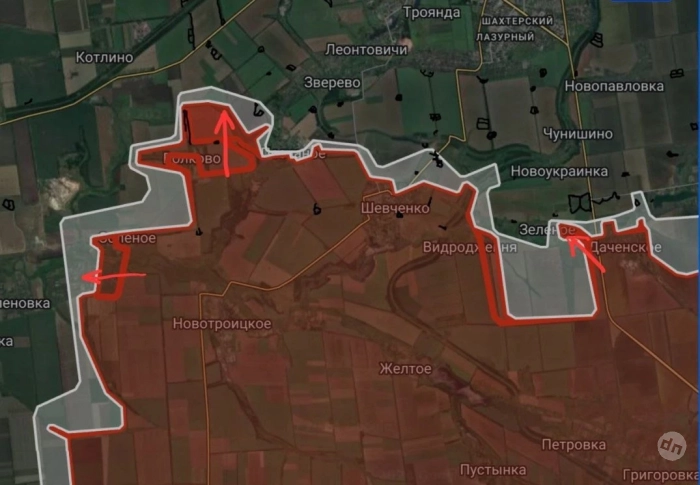 Российские войска расширили контроль территории в районе Зелёное, западнее Песчаное и Нововасилевки. ВС РФ ведут зачистку Петропавловки.