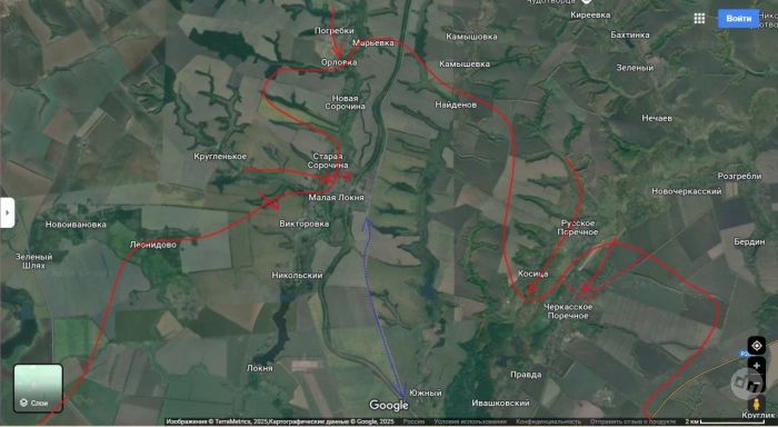 Итак, где мы наступаем. Во-первых, Малая Локня. С утра идут бои. Наши части пытаются выбить противника из посёлка . Если нам это удастся. Частям ВСУ севернее придется либо сражаться в окружении, либо сдаваться в плен.