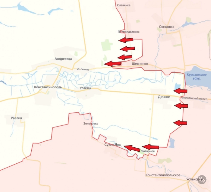 На Покровском направлении подразделения ВС РФ ведут тяжёлые бои на восточных окраинах Успеновки. Также сообщается о продвижении наших войск чуть севернее села (по ту сторону реки).