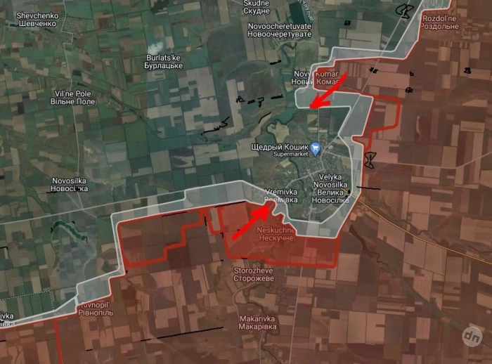 На Великоновосёлковском направлении российские войска расширили контроль территории южнее, на запад и севернее Нового Комара, а также плацдарм на правом берегу р. Мокрые Ялы.