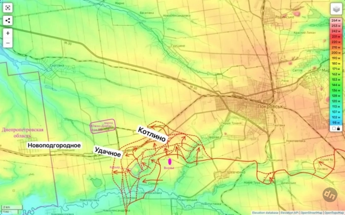 Ключевая точка, за которую сейчас идет борьба на восточном фронте - это развязка на трассе Покровск - Константиновка, к которой ранее прорвались наши десантники. Этот участок и соседнее с ним село Елизаветовка в настоящее время переходят из рук в руки. Так или иначе, дорога снабжения с этой стороны, фактически также перекрыта.