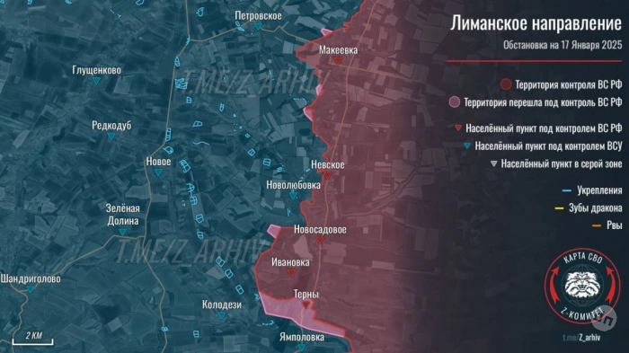 На Покровском фронте есть успехи у ВС РФ в Зверево, где идут упорнейшие бои, но внутри села и западнее есть продвижение в сторону Леонтовичей. В Котлино бои идут уже в центре. Продавливают оборону наши бойцы и в Удачном. После освобождения Котлино напрашивается движение на север в сторону Гришино. Это позволит перерезать трассу на Днепропетровск и часть дорог на север. К югу от Котлино идет сражение за Успеновку. ВС РФ стараются обойти село по полям и отрезать его гарнизон от Новоалександровки. Очень плотные бои развернулись за Надеждинку и Новоандреевку. МО сообщило об освобождении Славянки. Со стороны Шевченко идет штурм окраин Андреевки. В районе Мирнограда упорные бои по линии Зеленое-Даченское-Лысовка-Сухой Яр, явного движения там пока нет. Бои в Промине и Миролюбовке. Есть тактические успехи в Барановке, Тарасовке и Зеленом Поле. Об этом информирует Олег Царёв.