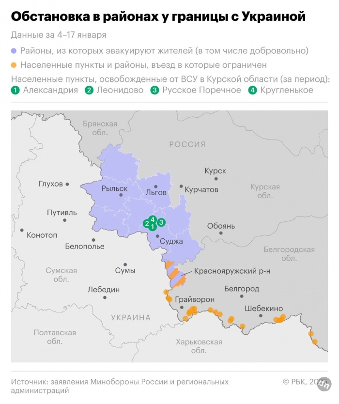 ВС РФ продолжают бои в Малой Локне в Курской области: карта боевых действий по состоянию на субботу, 18 января 2025 года