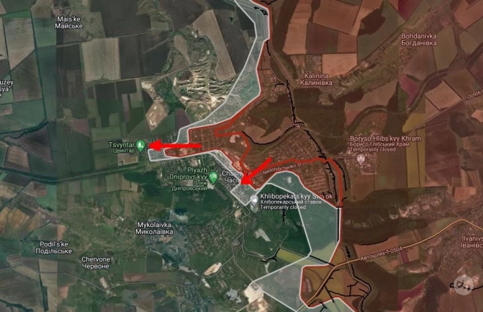 Российские войска продвинулись в направлении Серебрянное, юго-западнее Славянки на глубину до 1 км и западнее Петропавловки.