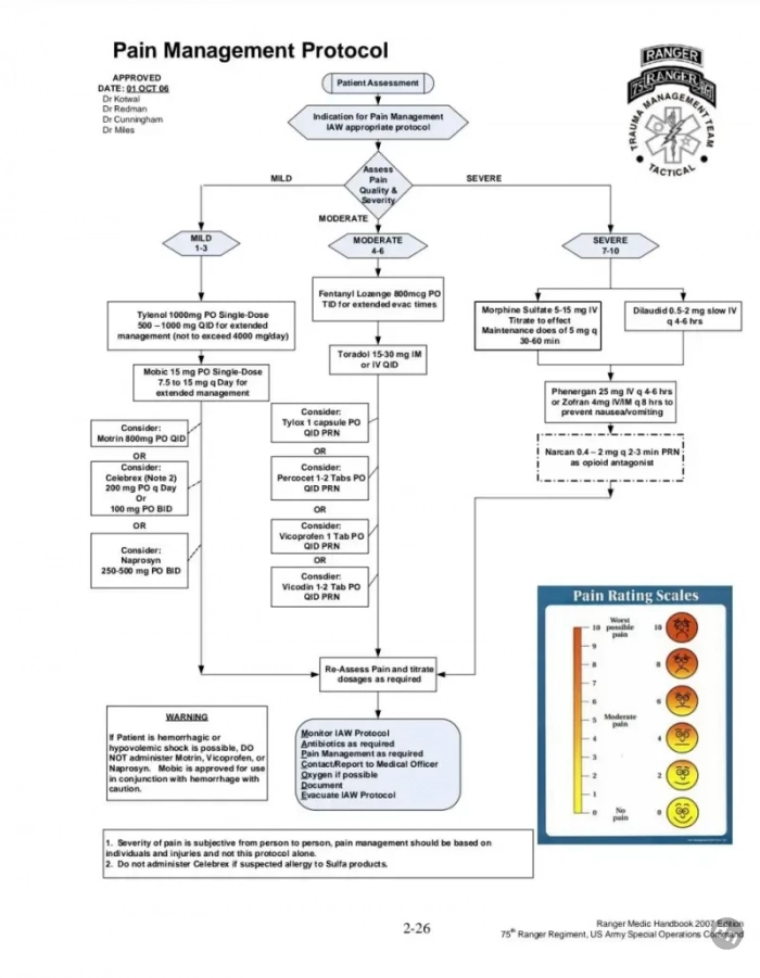 В июне 2024 года опубликовано пособие для ВС РФ: «Временные Указания По Применению Анальгетиков» — май 2024 (Рис. 1). Пособие создано под влиянием алгоритма аналгезии из современной версии ТССС (Tactical Сombat Сasualty Сare) (Рис. 2).