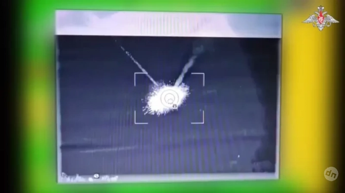 Момент поражения «Бабы-Яги» ракетой ЗРК «Гибка-С». Вид через ОЭС комплекса. Фото Минобороны РФ