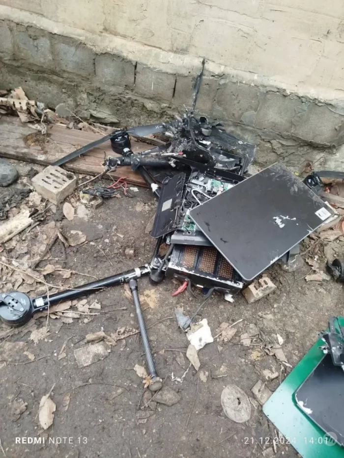 Сбитый беспилотник с терминалом системы Starlink. Фото Telegram / «Уголок Ситха»