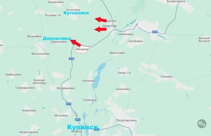 В результате успешных действий российские штурмовые подразделения двигаются в направлении сёл Дорошовка, а также в сторону реки Нижняя Двуречная, к селу Кутьковка Купянского района.