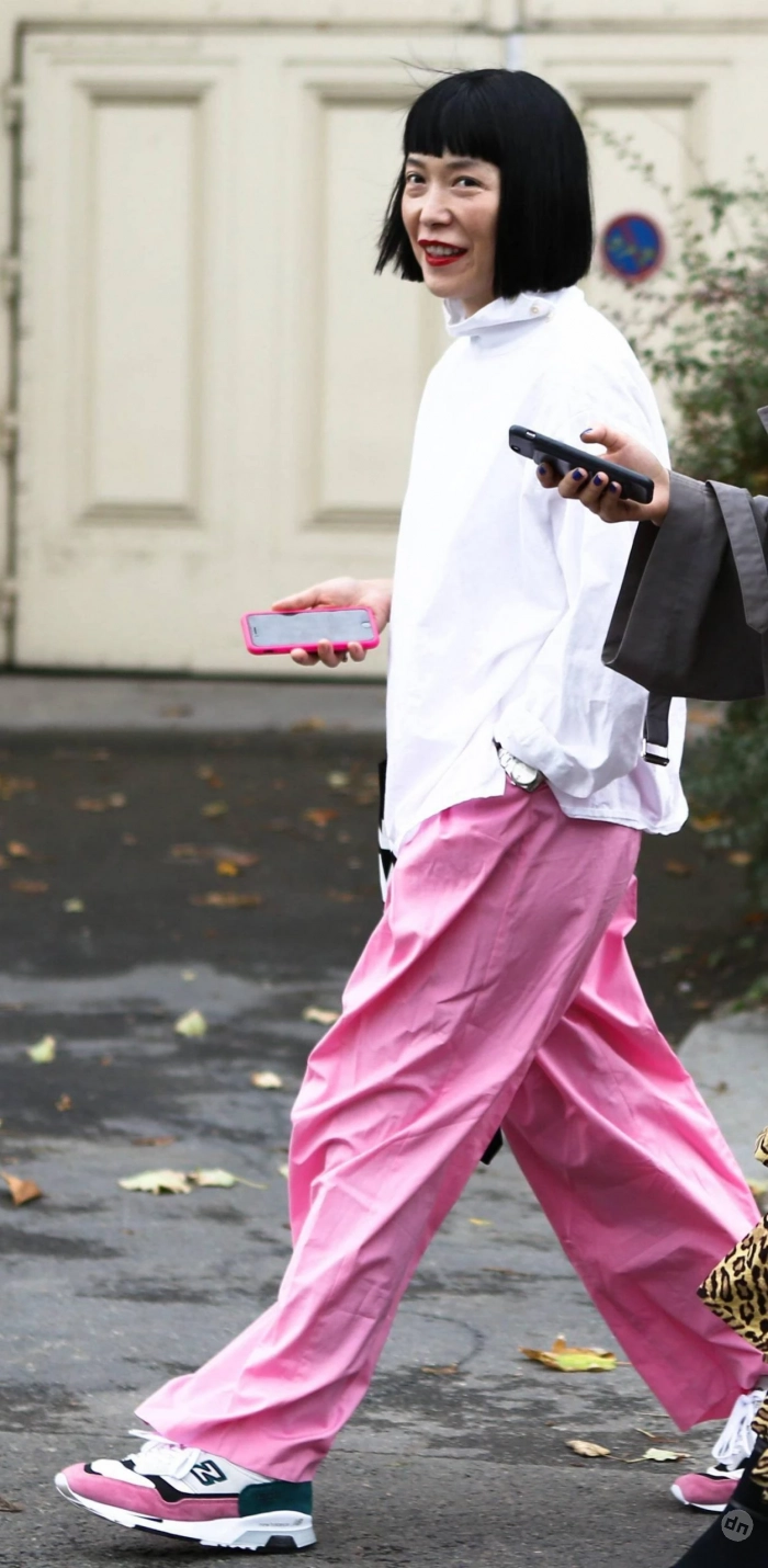 - С чем носить: яркие кроссовки лучше всего смотрятся с однотонными нарядами — черными брюками, белыми футболками или пастельными костюмами. Аксессуары в тон обуви подчеркнут стильный акцент.