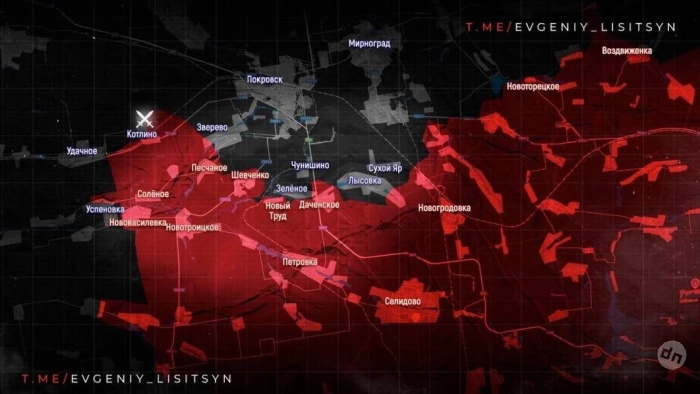 На Покровском (Красноармейском) направлении основные бои идут у развязки трассы Покровск - Константиновка (севернее Воздвиженки), а также юго-западнее Покровска. Наши части усиливают давление в районе Котлино. Бои тяжёлые.