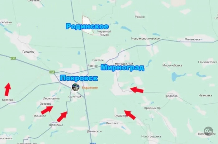 Город Родинское является крайне важным для украинской логистики на Покровском направлении населённым пунктом. От Родинского, расположенного к северу от Покровска, до самого Покровска около 6 км. При этом Родинское располагается у автомобильной дороги, которую называют северными воротами Покровска. Речь идёт об автодороге Т0515, ведущей на Доброполье и Краматорск. Именно эта дорога остаётся одной из двух (помимо Е50), по которой осуществляется снабжение Покровского гарнизона ВСУ.
