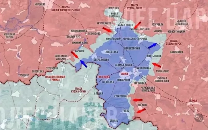 Между тем, противник продолжает оказывать ожесточенное сопротивление, но есть и позитивные новости. Сообщается, что подразделения наших десантников с упорными боями продвинулись в лесополосах юго-восточнее Николаево-Дарьино, противник был выбит из нескольких опорных пунктов. Ожесточенные бои в настоящее время ведутся у Черкасского Поречного, которое, по оценкам с мест, является последним форпостом ВСУ на направлении, откуда открывается оперативный простор для дальнейшего продвижения к Судже и далее к госгранице РФ с востока.