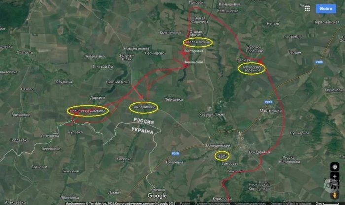 Подоляка сообщил, что прямо сейчас российские войска осуществляют очень сложный стратегически важный маневр. Штурмовики выходят на линию рек Локня-Малая Локня и пытаются занять важнейшие поселки в их верхнем течении - Лебедовку и Свердликово.
