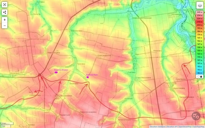 Однако ситуация ухудшилась для ВСУ не только в Андреевке, но и в Дачном к западу от Курахово, российские войска продолжают выбивать украинцев из села. В то же время началось продвижение ВС России и со стороны села Сухие Ялы.