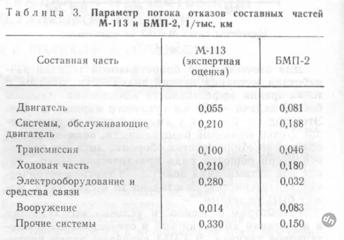 Используя эти данные, можно ориентировочно оценить безотказность М-113 и его систем (табл. 3).