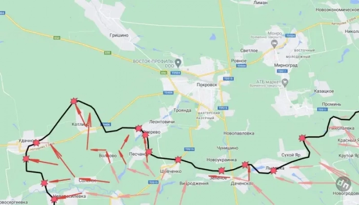 Передовые штурмовые подразделения российских войск предпринимают попытки обойти Покровск с западной стороны, тем самым перерезав одну из основных трасс снабжения, идущую на Днепропетровск. Украинские формирования пытаются не дать этого сделать, идут тяжелые бои. Тем не менее опасность прорыва с последующим охватом города существует и она весьма велика, у ВСУ просто не хватает сил и средств для длительной обороны.