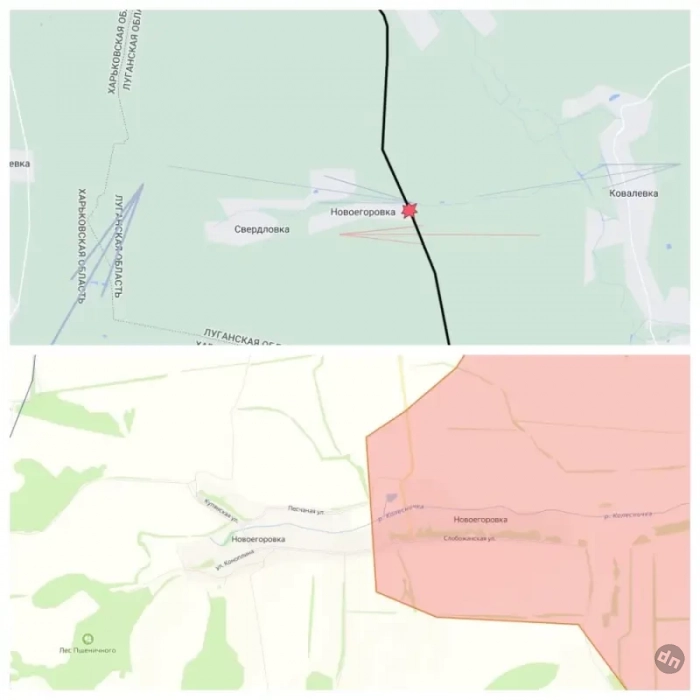 Кстати, немного о споре в отношении Новоегоровки, возникшем в последнее время. Суть его в том, что часть российских ресурсов обвиняет командование в «приписках» в отношении этого села, которое якобы не было взято, приводя как доказательство карты. На самом деле там два села, разделенных дорогой, и оба называются Новоегоровкой. Но по российским картам западное село называется Свердловка. Вот его-то российские войска еще не заняли, тогда как восточное уже под нами. Как пример две разные карты с одним селом: