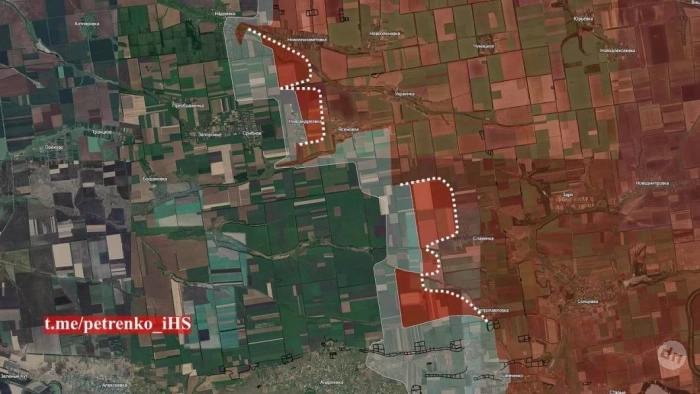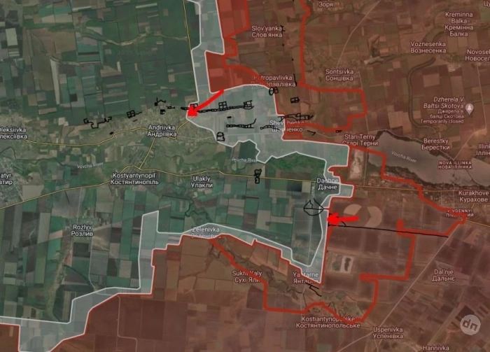 На Константинопольском направлении российские войска давят в восточной части Андреевки с опорой на Шевченко и Петропавловку.