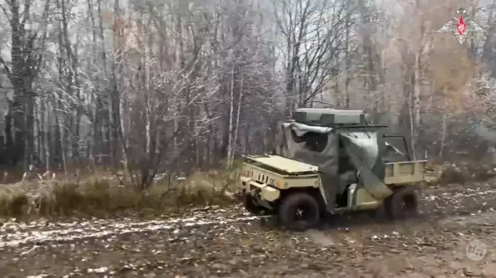 Багги на маршруте. На крыше машины заметна станция РЭБ. Фото Минобороны РФ
