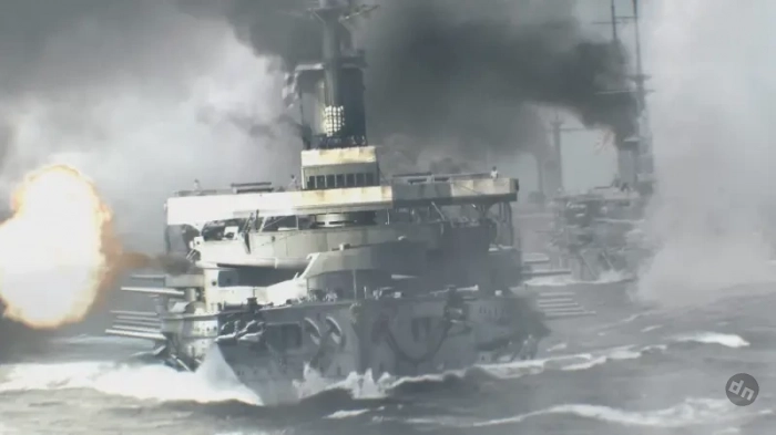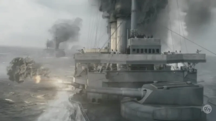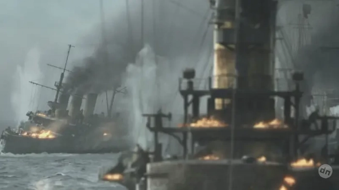 Петля Того в исполнении японских броненосцев. Кадр из фильма «Тучи над холмами»