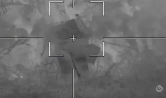 Минобороны России опубликовало кадры, на которых запечатлен момент уничтожения ударом барражирующего боеприпаса «Ланцет» самоходной артиллерийской установки украинской армии.