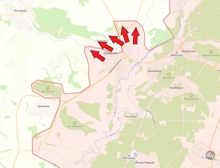 На Красноармейском направлении российские военнослужащие пытаются пытаются развить свой успех из района Котлино и в районе н.п. Зверево.