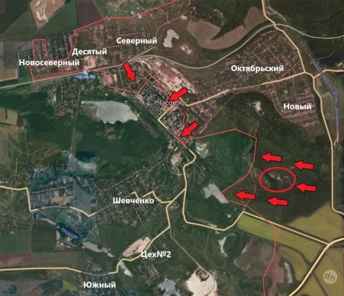В Часов Яре наши подразделения заняли позицию на вершине отвала на западной окраине рудника «Блок-9». Большая часть микрорайона Северный в Часовом Яре находится под контролем российских военных, сообщил командир группы штурмовиков бригады "Эспаньола. Южнее действуют подразделения ВДВ, севернее - 200-я бригада мотострелков ВС России.