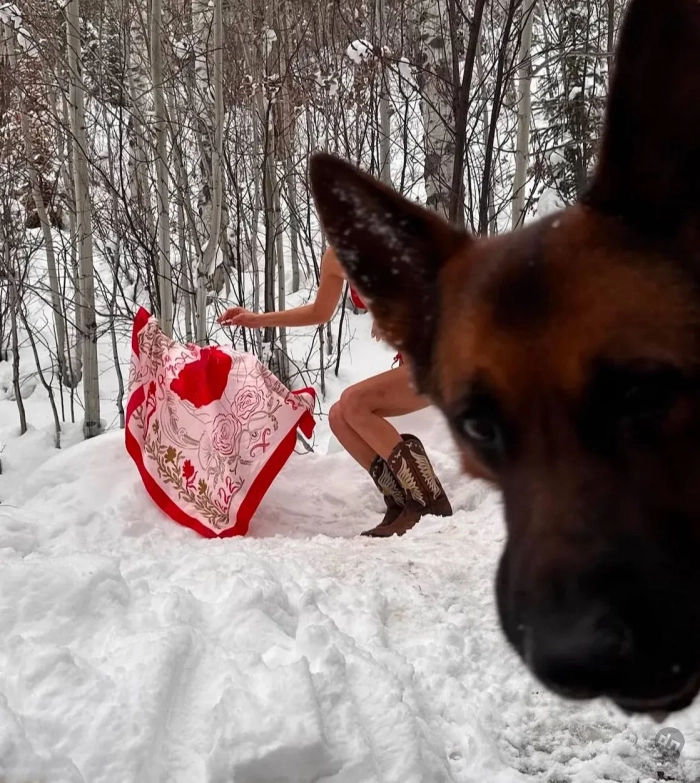 Белла Хадид опубликовала в инстаграме* новую фотосессию: на кадрах 28-летняя модель позирует в купальнике и ковбойских сапогах в снегу в окружении берёз.