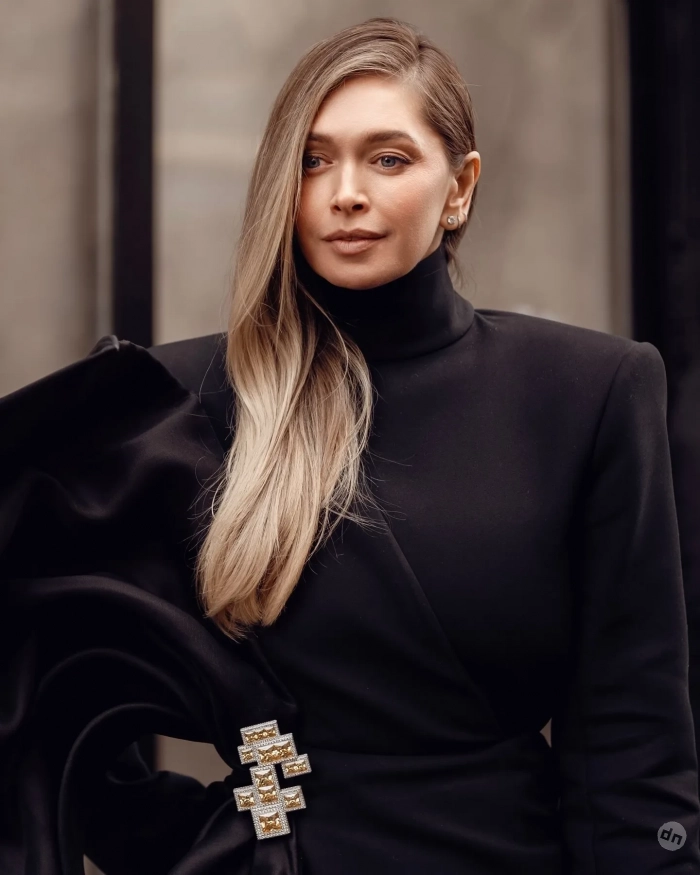На мероприятии Вера Брежнева появилась в чёрном закрытом платье с необычной драпировкой и дополнила образ яркой брошью. Она не рассказывала в соцсетях о своих впечатлениях от Недели моды, а только опубликовала несколько снимков.