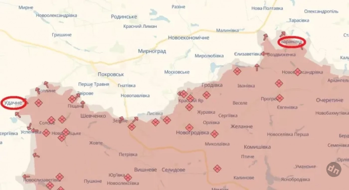 Согласно его данным, продвижение идет в районе Барановки и недалеко от населенного пункта Шевченко. Петренко утверждает, что россияне продвинулись здесь вдоль нескольких лесополос вглубь украинской обороны примерно на 850 метров. А на восточной окраине Удачного они уже контролируют шахтный вентиляционный ствол.