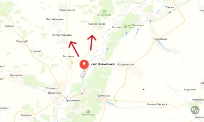Штурмовые группы ВС РФ, совершив пятикилометровый бросок вдоль левого берега реки Оскол, взяли под свой контроль не только населенный пункт Новомлынск, но и господствующие высоты севернее этого села.