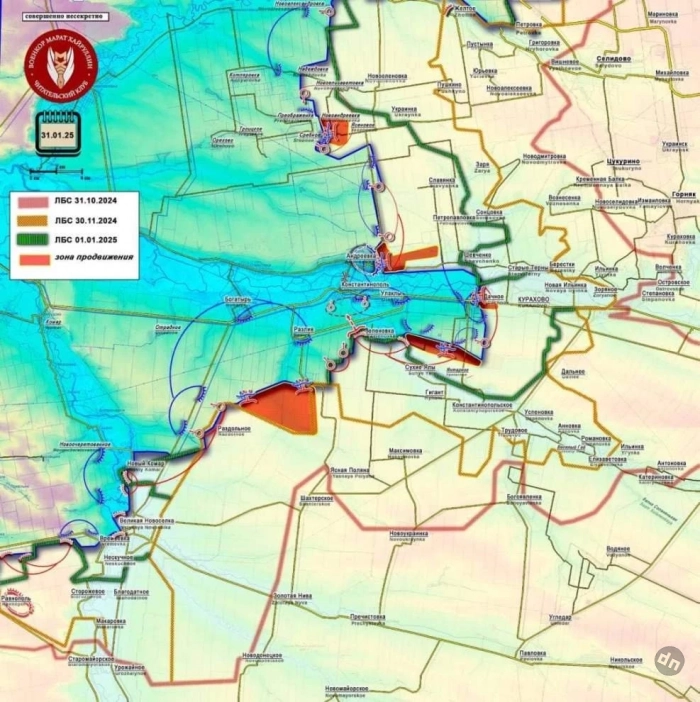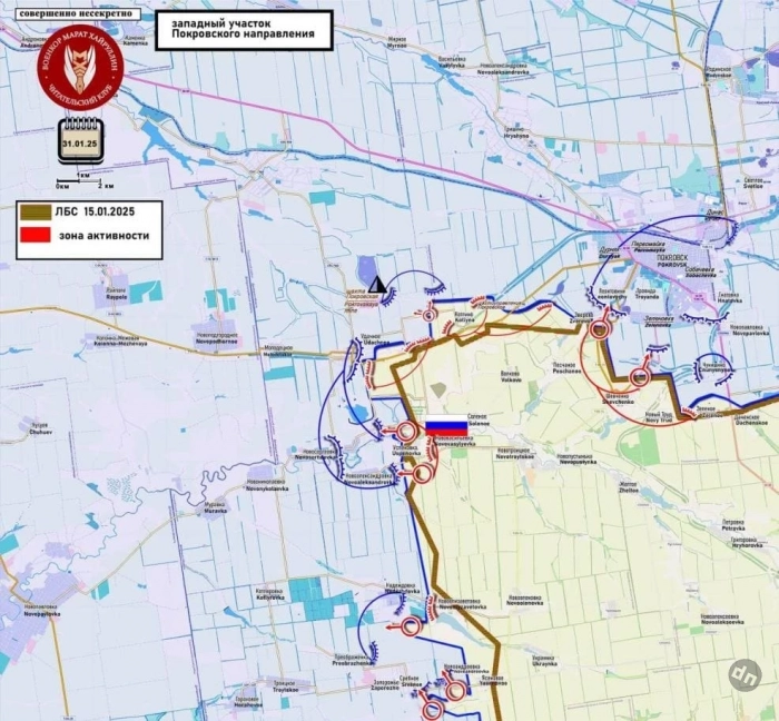 К югу и юго-западнее Покровска (Красноармейска) ВС России продолжают продвижение, добиваясь тактических успехов в тяжелых боях. Западнее Курахово наши войска пробиваются к Константинополю.