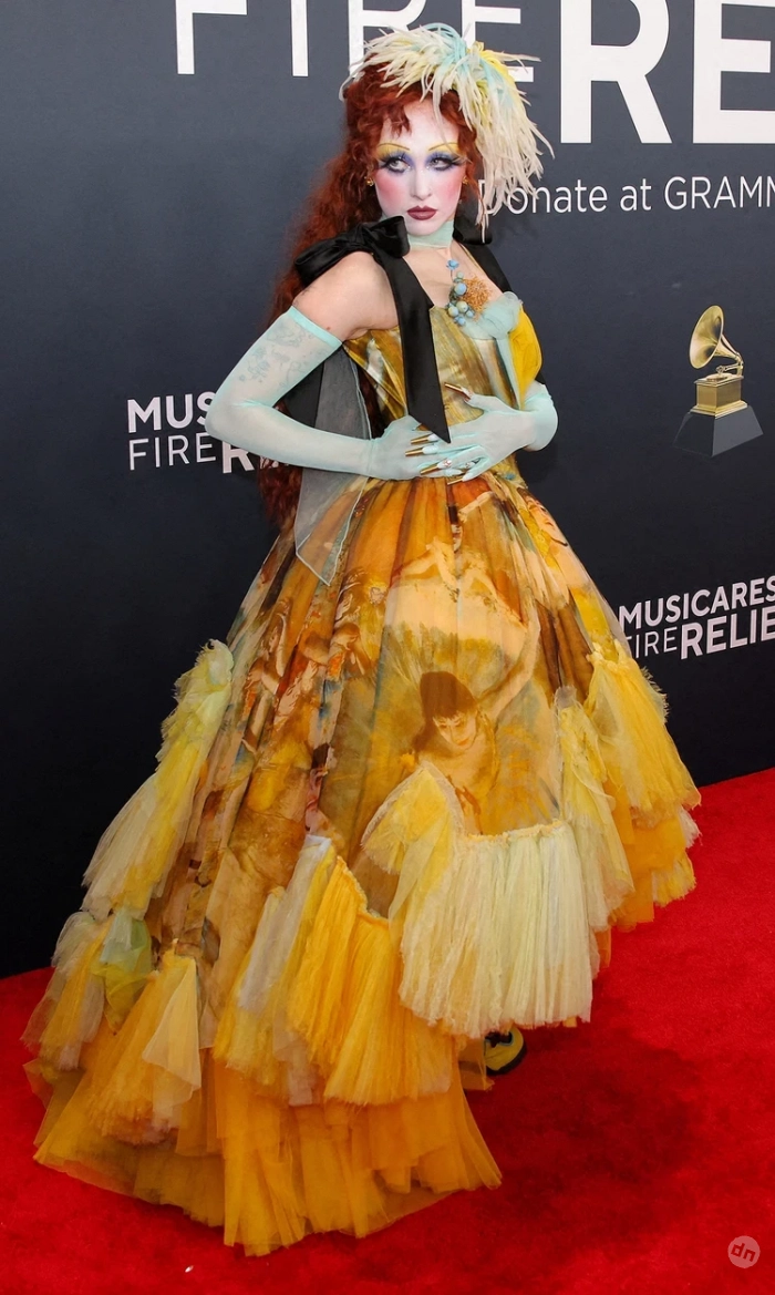 Эксцентричная певица Чаппел Рон, известная своими странными образами, не изменила себе и на ковровой дорожке «Грэмми». Чаппел, которой, кстати, всего 26 (!) лет, продемонстрировала архивный наряд Jean Paul Gaultier и кукольный мейк с любимыми синими тенями. Образ образом, конечно, но все это ужасно старит молодую исполнительницу.