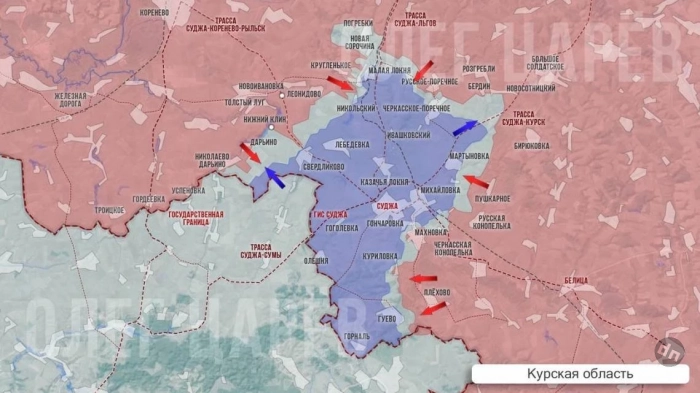 На других участках Курского приграничья обстановка пока без изменений - продолжаются тяжёлые бои под Суджей, на рубеже Русского и Черкасского Поречного и в районе Гуево.