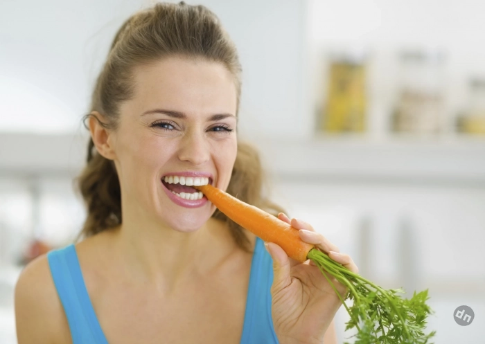 - Твердые овощи и фрукты (морковь, яблоки) – естественно очищают зубы и улучшают кровообращение десен.