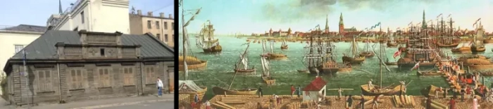 Рижская купеческая гильдия, также известная как Большая гильдия Риги или гильдия Святой Марии (Die Große Gilde zu Riga/St. Marien-Gilde), была немецкой купеческой гильдией в Риге, где немецкие торговцы стали играть более заметную роль в жизни города. В XIV веке город Рига находился под властью Ливонского ордена и под сильным влиянием Ганзейского союза. Здесь процветали торговые отношения, строительство и ремесла, а река Даугава (Западная Двина), протекающая по территории современных России, Белоруссии и Латвии, была старейшим водным путем международного торгового пути между Балтийским и Черным морями еще с V века. В истории мореплавания этот путь чаще называют торговым путем из варяг в греки или янтарным путем Даугава-Днепровье. Сюда импортировались металлические изделия, специи, соль и различные ткани, а основными экспортируемыми товарами были воск, лен, пенька, древесина и меха. В XIII веке Рижский городской совет заключил договоры о международной торговле и товарообмене с русскими княжествами, а позднее и с ганзейскими городами, став таким образом значимым межгосударственным торговым портом и членом Ганзейского союза. На фото слева: жилье ганзейских купцов — охраняемое наследие в Риге. Источник: tripadvisor.com. На фото справа: морской порт Риги.