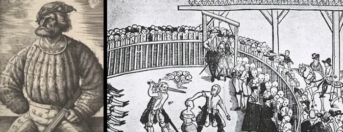 Фото слева: Портрет Клауса Штёртебекера. Источник: Metropolitan Museum of Art. Художник: Daniel Hopfer (1470–1536). Фото справа: Казнь пирата Клауса Штёртебекера (ок. 1360-1401) и семидесяти его сообщников из Виталиенского братства, лидером которого он был, 20 октября 1401 года в Гамбурге. Гравюра по мотивам популярного изображения конца XVI века. Поль Лакруа, Париж, 1878 год.