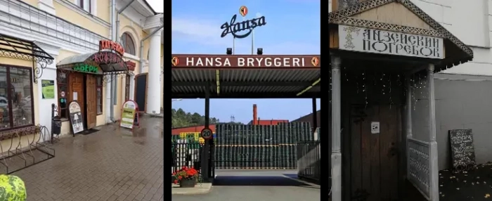 В большинстве случаев слово «Hanse» имеет мало или вообще не имеет ничего общего с самой Hanse, но места, в которых расположены эти предприятия, имеют ганзейское прошлое. Фото слева: ресторан Hansa Grill в Таллине. Фото в центре: пивоварня Hansabryggeri в норвежском Бергене. Фото справа: харчевня «Ганзейский погребок» в Великом Новгороде.