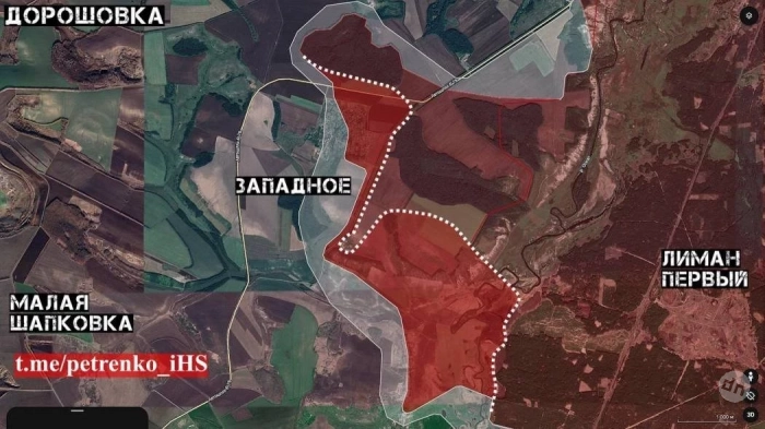 ВС РФ продвинулись в Западном и южнее вдоль р. Оскол на участке шириной до 6.12 км на глубину до 1.7 км.