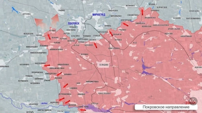 На Покровском фронте в боях за Удачное намечается перелом в пользу ВС РФ. Несмотря на большие резервы ВСУ, брошенные на стабилизацию фронта, противник понес огромные потери, а удержать позиции не смог. Наши штурмовики приступили к атаке на ж/д станцию. Есть продвижения к северу от Котлино. В Успеновке по-прежнему упорнейшие бои, там практически без изменений. В Надеждинке противник контратаковал с применением НАТОвской бронетехники, но весь отряд был уничтожен. В селе Запорожье армия России закрепилась в восточной части. В украинских пабликах беспокоятся, что за селом Орехово нет укреплений, а до него от Запорожья всего 5 км. Попытку прорыва предприняли ВС РФ на рубеже Чунишино-Лысовка, есть тактические успехи. Восточнее МО РФ подтвердило освобождение Барановки. Наши бойцы усилили штурм Елизаветовки - ее освобождение необходимо для развития наступления восточнее Мирнограда, сообщил Олег Царев в своем Telegram-канале.