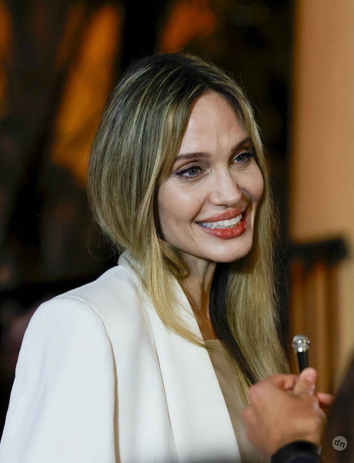 Анджелина Джоли посетила церемонию награждения премии Maltin Modern Master Award в рамках 40-го Международного кинофестиваля в Санта-Барбаре. 49-летняя актриса вышла на дорожку в кремовом платье-комбинации с открытой спиной и карманами. Она дополнила образ белым жакетом, который сняла перед тем, как позировать фотографам, и украшениями Nak Armstrong.
