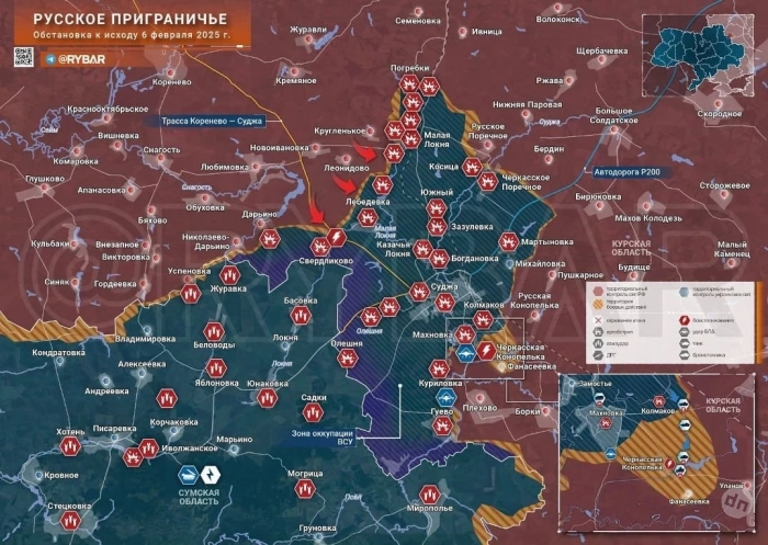 Карта боевых действий в Курской области. Данные на 7 февраля