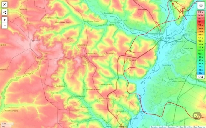 С учётом рельефа местности можно говорить о том, что Если даже в Фиголевке наших частей и нет (они там в низине особо не нужны), то противника там нет и подавно.