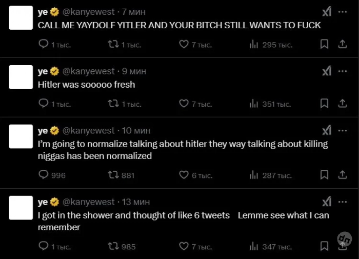 47-летний рэпер Канье Уэст в соцсети X опубликовал серию постов, в которых высказался о нацизме, доминировании над женой и евреях. После этого российский дизайнер Гоша Рубчинский объявил о прекращении сотрудничества с брендом Yeezy.