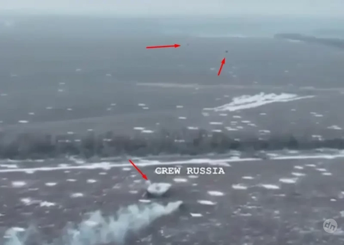 Затем в небе появляются две «Бабы Яги», которые несколько раз осуществляли сброс боеприпасов по российской машине. К счастью, экипаж сумел увернуться от воздушных ударов.