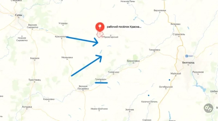 ВСУ рассматривают возможность наступления на Белгородскую область на участке между н.п. Красная Яруга и н.п. Грайворон