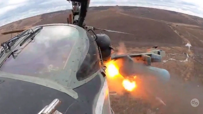 Входящий в состав смешанной тактической группы экипаж провел атаку с использованием авиационных ракет на личный состав и бронетехнику противника.